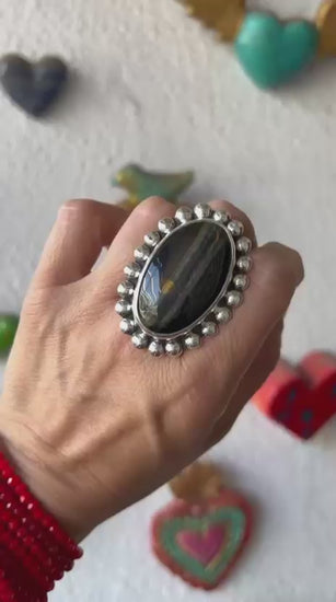 Anillo Flor con Ojo de Halcón.