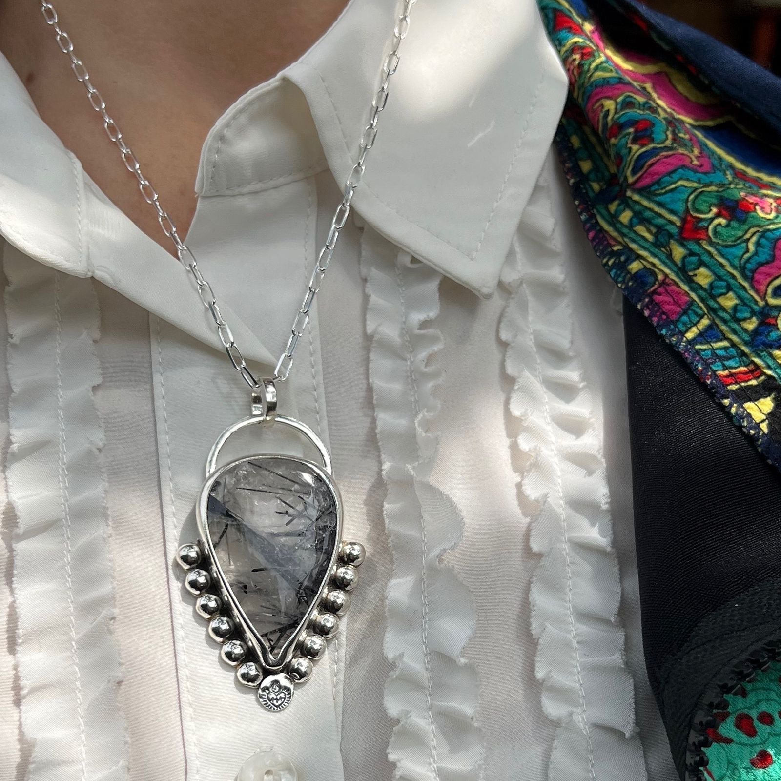 Dije Flor con Cuarzo Turmalinado.