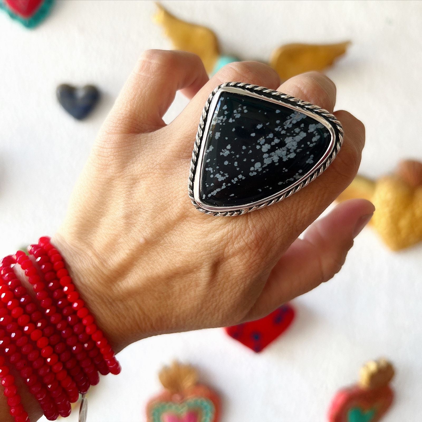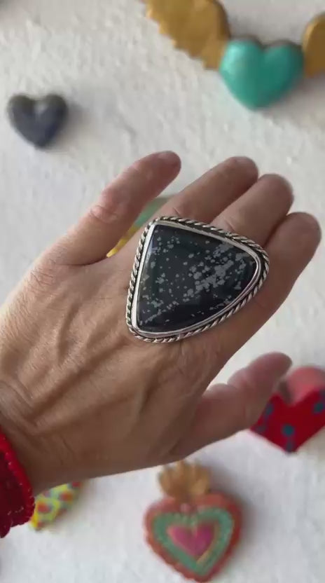 Anillo Maxi Trenzado. Obsidiana Naveda